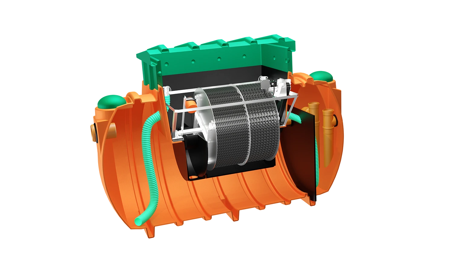 Przydomowa biologiczna oczyszczalnia ścieków RotoClean to innowacyjna oczyszczalnia w technologii biologicznych złóż obrotowych. Idealna do montażu w miejscach pozbawionych dostępu do kanalizacji sanitarnej. Unikalna konstrukcja i płytako osadzony dopływ urządzeń na montażu w każdych warunkach gruntowo-wodnych. Urządzenie RotoClean składa się z poziomego, wzmocnionego zbiornika podzielonego na osadnik wstępny, biologiczny oraz wydzieloną komorę osadnika zarejestrowanego. Oczyszczalnia jest na zasilaniu, wahania temperatury i chwilowy brak dopływu ścieków. Za nadanie ruchu obrotowego złoża uniwersalnego ze sterowaniem dozownikiem odpowiada wolnoobrotowy motoreduktor.